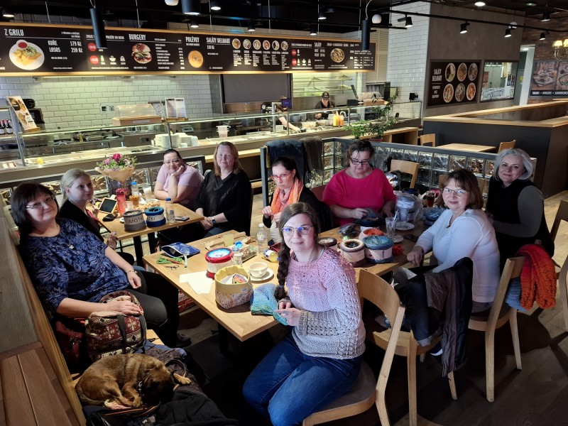 od 18h se potkáváme s pokročilými, kde si pleteme, háčkujeme,